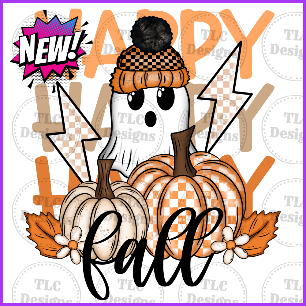 Happy Fall Ghost Checkered Full Color Transfers