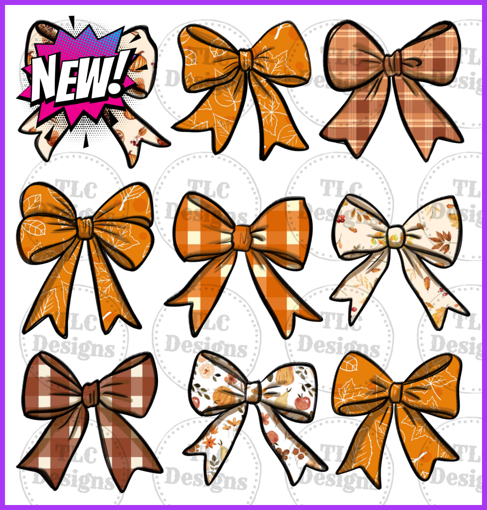 Retro Fall Pumpkin Bow Full Color Transfers