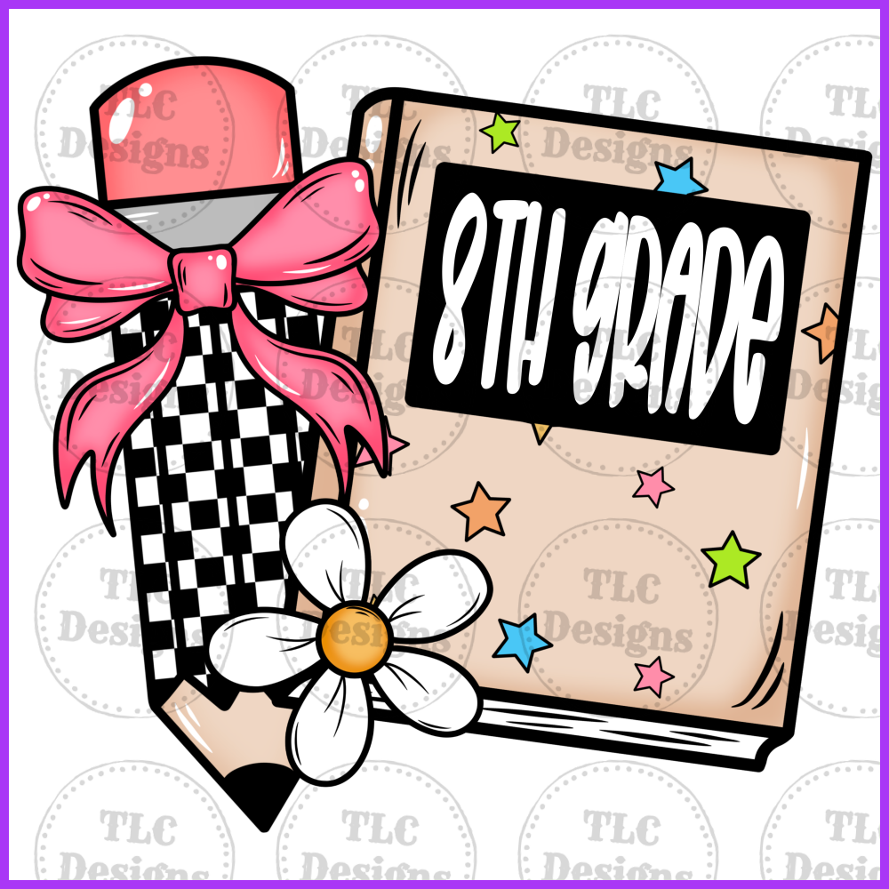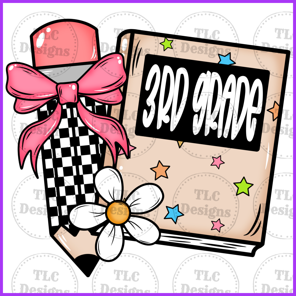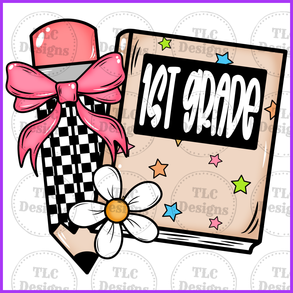 1St Grade Pencil Daisy- All Grade Available Put In Notes Full Color Transfers