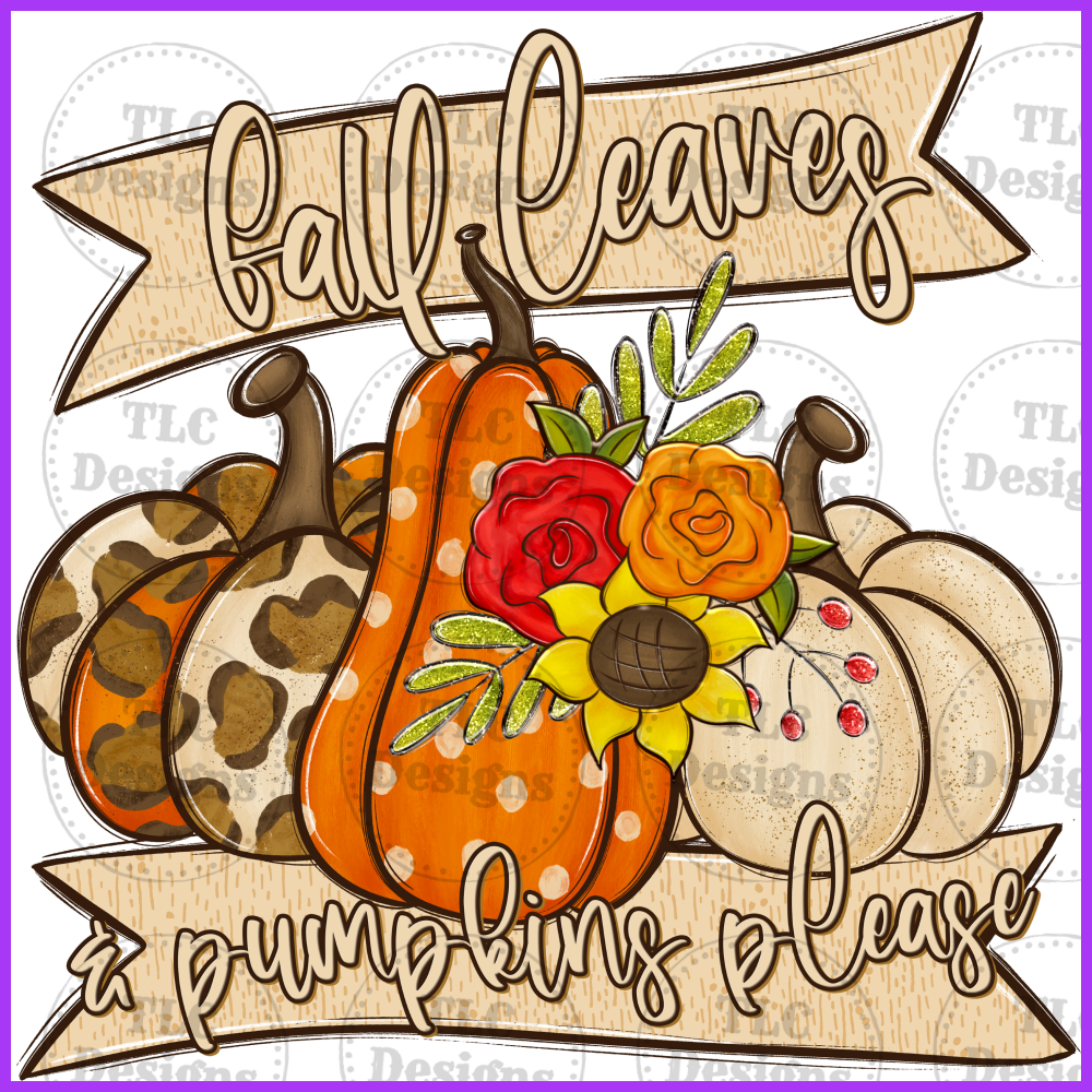 Fall Leaves And Pumpkins Please Full Color Transfers
