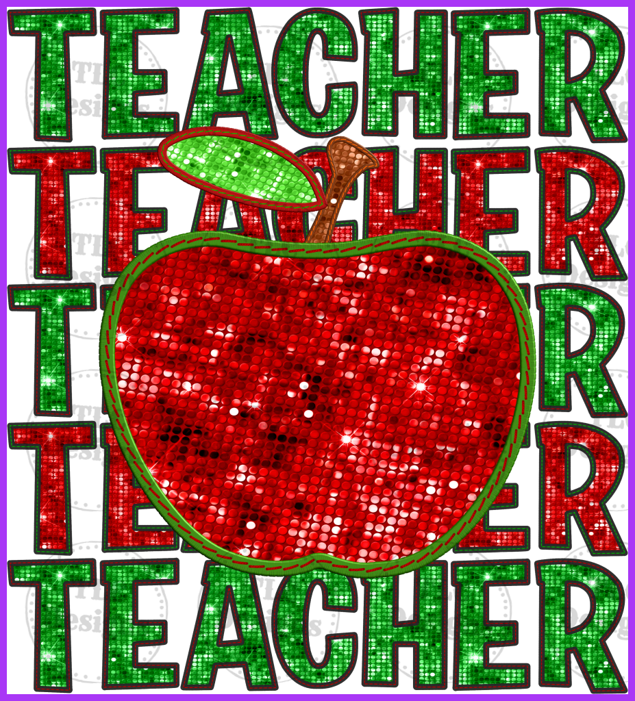 Faux Sequin Teacher Red Apple Full Color Transfers