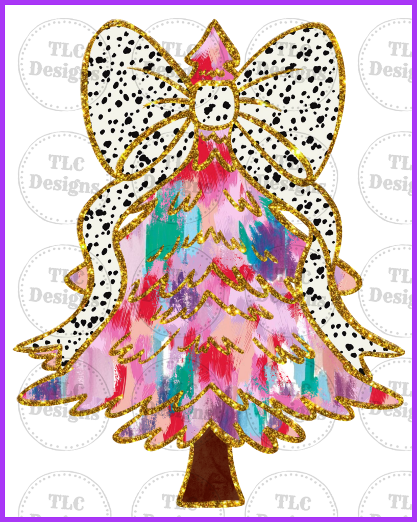 Pink Painted Christmas Tree With Bow Full Color Transfers
