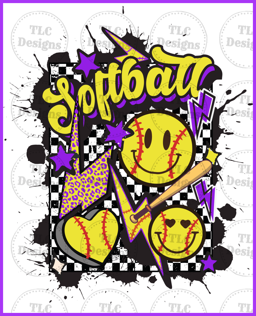 Softball Purple Bolt With Free Pocket Full Color Transfers