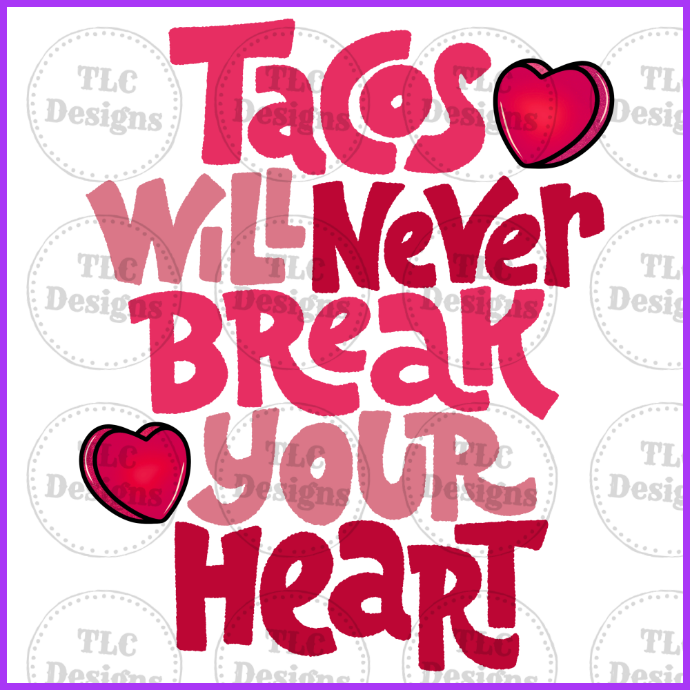 • Load image into Gallery viewer, Tacos Will Never Break Your Heart Full Color Transfers